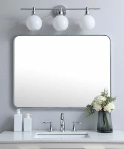 Outlet 😀 Elegant Furniture & Lighting Ellis Soft Corner Metal Rectangular Mirror, 27″x36″, Silver 🛒
