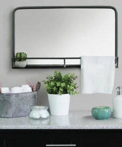 Outlet 👏 Elegant Furniture & Lighting Ellis Soft Corner Metal Rectangular Mirror, 27″x36″, Black ❤️