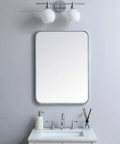 Budget 🛒 Elegant Furniture & Lighting Ellis Soft Corner Metal Rectangular Mirror, 22″x30″, Silver 👍