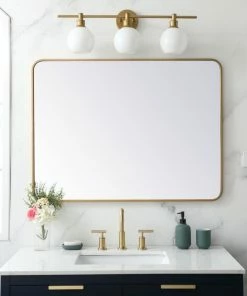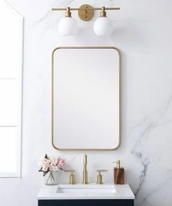 Buy 🎁 Elegant Furniture & Lighting Ellis Soft Corner Metal Rectangular Mirror, 20″x30″, Brass ❤️
