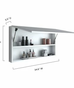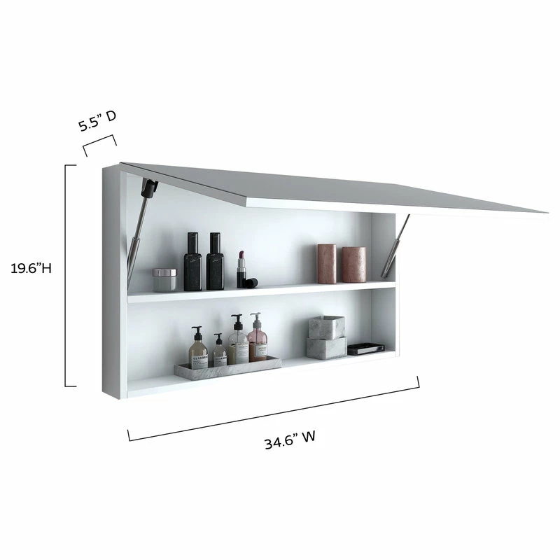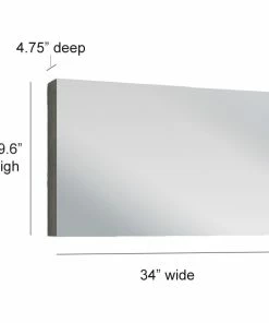 DIMENSIONS – Assembled cabinet measures 34″ wide, 19.6″ high, and extends just 4.75″ from the wall. Assembly and mounting required. Mounting hardware included.