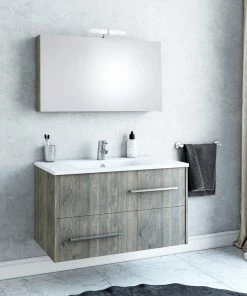 DURABLE AND EASY TO CLEAN – Built from particle board and melamine with a grey woodgrain finish, these lightweight cabinets resist stains and easily wipe clean.