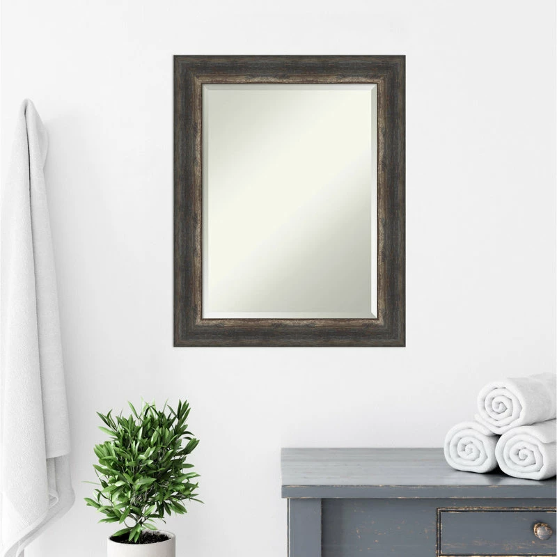 Give your wall or bathroom the finishing touch with this framed, wall mounted mirror. This mirror features a flat frame with woodgrain pattern and slightly raised flat patches resembling bark texture. A wall mirror can make your space appear larger and more inviting, especially if its a well-placed foyer or living room mirror. Hang it at eye level or position it so it reflects other home decor elements in the room. Amanti Art provides high quality, handmade framed art, mirrors and organization boards for your home improvement projects. Our home decor products are made using traditional custom framing techniques that give you the kind of quality you’d expect from your local frame shop.