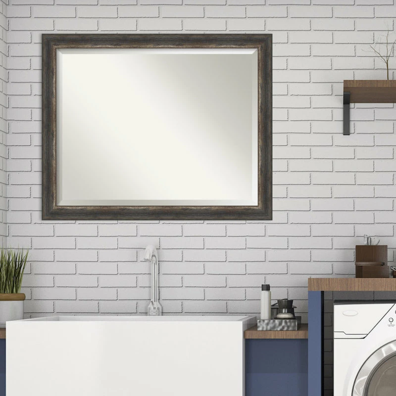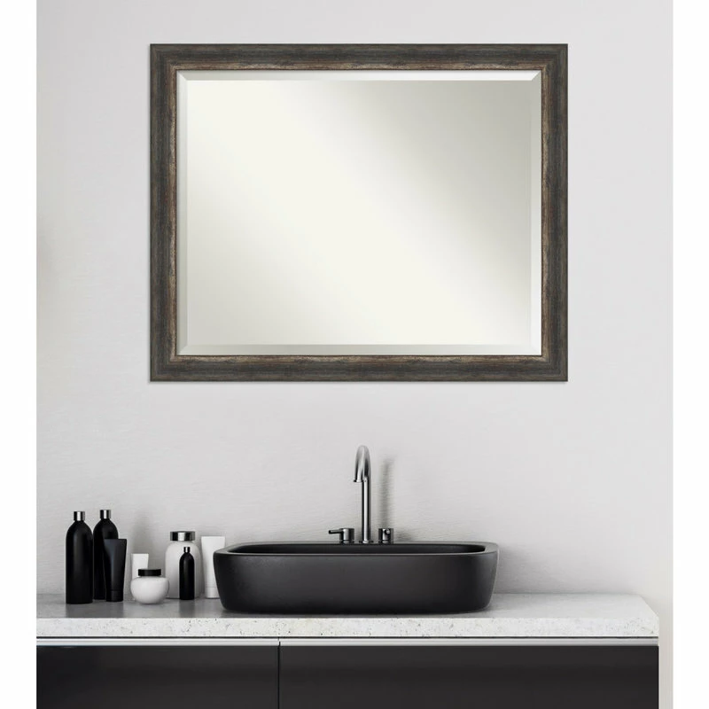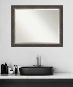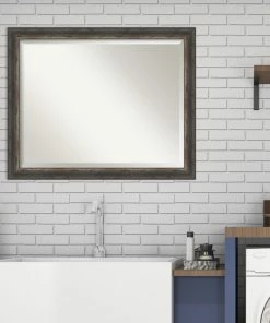 Give your wall or bathroom the finishing touch with this framed, wall mounted mirror. This mirror features a flat frame with woodgrain pattern and slightly raised flat patches resembling bark texture. A wall mirror can make your space appear larger and more inviting, especially if its a well-placed foyer or living room mirror. Hang it at eye level or position it so it reflects other home decor elements in the room. Amanti Art provides high quality, handmade framed art, mirrors and organization boards for your home improvement projects. Our home decor products are made using traditional custom framing techniques that give you the kind of quality you’d expect from your local frame shop.