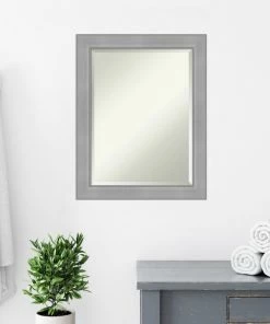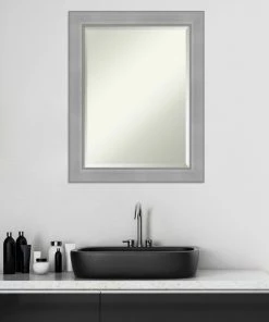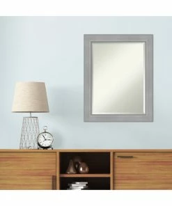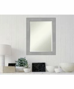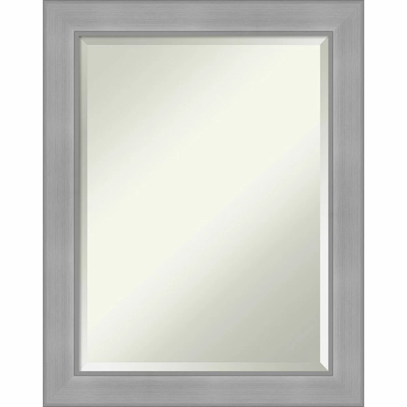 Give your wall or bathroom the finishing touch with this framed, wall mounted mirror. This mirror features a wide, flat brushed metallic light silver frame with smooth matte silver inner and outer edges. A wall mirror can make your space appear larger and more inviting, especially if its a well-placed foyer or living room mirror. Hang it at eye level or position it so it reflects other home decor elements in the room. Amanti Art provides high quality, handmade framed art, mirrors and organization boards for your home improvement projects. Our home decor products are made using traditional custom framing techniques that give you the kind of quality you’d expect from your local frame shop.