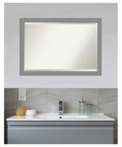 Give your wall or bathroom the finishing touch with this framed, wall mounted mirror. An Amanti Art mirror holds it value with premium finishing that you can appreciate up close. This decorative mirror features a contemporary, subtly brushed silver frame with flat profile. Metallic finish and minimalist shape will provide a modern look to any room. Amanti Art is headquartered in Madison, WI and provides high quality, handmade framed art, mirrors and organization boards for your home improvement projects. Our home decor products are made using traditional custom framing techniques that give you the kind of quality you’d expect from your local frame shop. Because of our focus on workmanship, our products are used by architects, developers, interior designers and home owners alike to create beautiful functional living spaces.