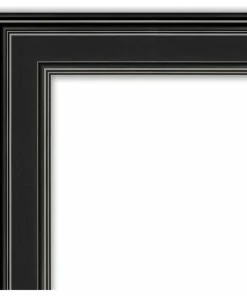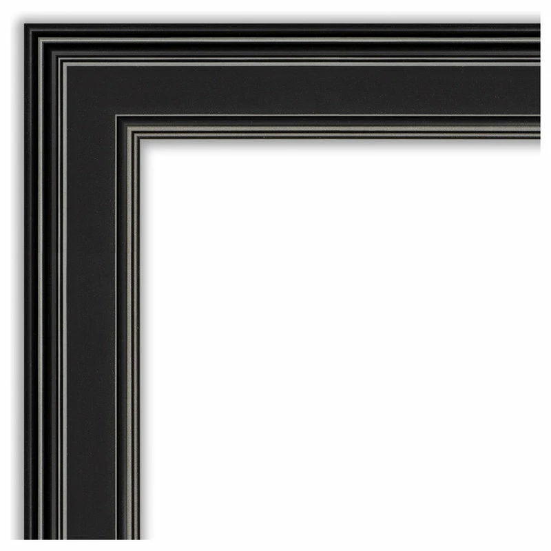 Give your wall or bathroom the finishing touch with this framed, wall mounted mirror. An Amanti Art mirror holds it value with premium finishing that you can appreciate up close. This decorative mirror features a classic 3-inch wide black frame with a flat panel surface and dramatic raised inner and outer edges. Weathered pockmark details can be seen throughout. Amanti Art is headquartered in Madison, WI and provides high quality, handmade framed art, mirrors and organization boards for your home improvement projects. Our home decor products are made using traditional custom framing techniques that give you the kind of quality you’d expect from your local frame shop. Because of our focus on workmanship, our products are used by architects, developers, interior designers and home owners alike to create beautiful functional living spaces.