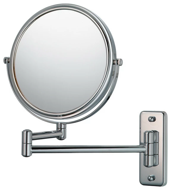 Look good from every angle with the Swing-Arm Wall Mirror. When your standard bathroom mirror doesn’t cut it, this double-sided mirror steps in with two magnified sides that help achieve flawless makeup application or perfectly trimmed eyebrows. Its double arm extends up to 13 inches, remaining comfortably within reach from wherever you wash and prep in the bathroom. The has a slim steel frame in a chrome finish that pairs seamlessly with any design.