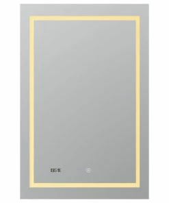 AQUADOM combines contemporary design and masterful craftsmanship with modern technology to produce professional-quality Mirrors. AQUADOM Mirrors come in 5 different models โ Daytona, Soho, Edge, Frost, Flame, each comes with a variety of cutting-edge features, latest technologies and top materials so you can find the style that fits your home best. Daytona is the most technologically advanced model in design, featuring AQUADOMS signature 3D lighting technology that allows you to switch between three light temperatures, as well as a digital clock. Soho model offers a unique take on a front LED strip by having two, sleek lighting strips on the front of the mirror as well as AQUADOMโs unique Acrylight technology, which allows the mirror to be lit up along the frame producing a beautiful light halo. Edge, quite literally, pushes the LED design boundaries by placing the LED light strip at the edge of the mirror, emphasizing the halo produced by the Acrylight lighting technology. Flame models come with an alternative take by sporting a flare-like LED design along the edges. Frost follows suit with its geometric, snowflake inspired lighting. All of AQUADOMโs mirrors are equipped with a defogger which can be turned on and off, so that you may enjoy a fog free reflection after a hot shower or bath. AQUADOM offers a wide selection of sizes from 20-inch to 86-inch width, along with rectangular and circular models. All of the mirrors come a beautiful, silver mirrored glass, and an anodic oxide finish which impedes corrosion and increases durability.