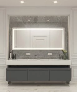 AQUADOM combines contemporary design and masterful craftsmanship with modern technology to produce professional-quality Mirrors. AQUADOM Mirrors come in 5 different models โ Daytona, Soho, Edge, Frost, Flame, each comes with a variety of cutting-edge features, latest technologies and top materials so you can find the style that fits your home best. Daytona is the most technologically advanced model in design, featuring AQUADOMS signature 3D lighting technology that allows you to switch between three light temperatures, as well as a digital clock. Soho model offers a unique take on a front LED strip by having two, sleek lighting strips on the front of the mirror as well as AQUADOMโs unique Acrylight technology, which allows the mirror to be lit up along the frame producing a beautiful light halo. Edge, quite literally, pushes the LED design boundaries by placing the LED light strip at the edge of the mirror, emphasizing the halo produced by the Acrylight lighting technology. Flame models come with an alternative take by sporting a flare-like LED design along the edges. Frost follows suit with its geometric, snowflake inspired lighting. All of AQUADOMโs mirrors are equipped with a defogger which can be turned on and off, so that you may enjoy a fog free reflection after a hot shower or bath. AQUADOM offers a wide selection of sizes from 20-inch to 86-inch width, along with rectangular and circular models. All of the mirrors come a beautiful, silver mirrored glass, and an anodic oxide finish which impedes corrosion and increases durability.