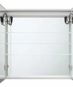 - 5mm Silver Mirrored Glass, 90-Degree Soft Close Hinges, 8mm Glass Shelves