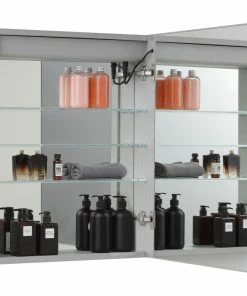 - Three-Mirror Design: allows you to use the mirror and access the contents of the medicine cabinet at the same time.
