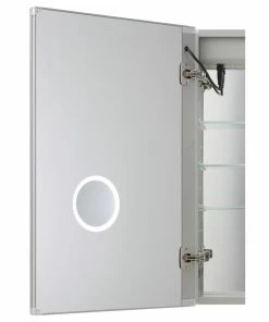 Defogger(Prevent steamy reflections with defogger. On/Off switch allows for one-touch control), Touch Screen Button, Dimmer, Electrical Outlet, Recessed or Surface Mount, Integrated LED 3X Magnifying Mirror