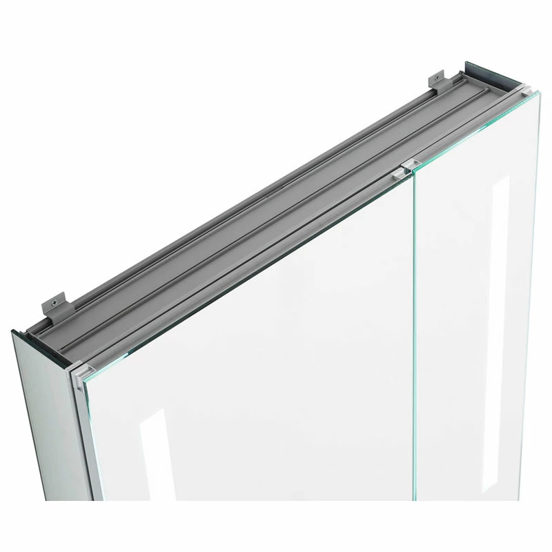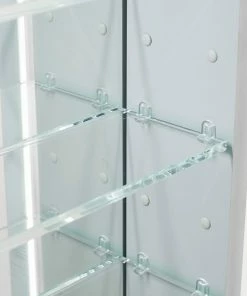 The Double-Sided Mirrored Doors and Mirrored Back Wall, Three-Mirror Design Allows You to Use the Mirror and Access the Contents of the Medicine Cabinet at the Same Time. 8mm Glass Shelves. These cabinets are constructed using anodized aluminum frames