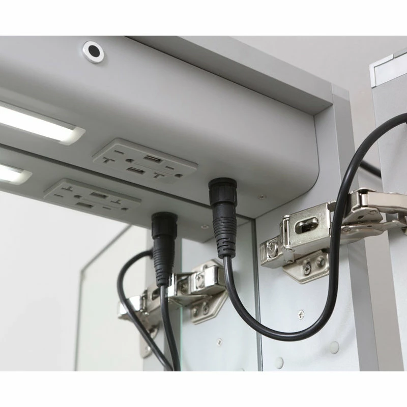Digital Clock, Defogger(Prevent steamy reflections with defogger. On/Off switch allows for one-touch control), Touch Screen Button, Dimmer, Integrated LED 3X Magnifying Mirror, Electrical Outlet with USB, Recessed or Surface Mount .