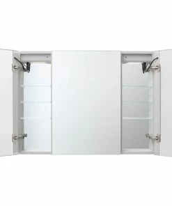 The Double-Sided Mirrored Doors and Mirrored Back Wall, Three-Mirror Design Allows You to Use the Mirror and Access the Contents of the Medicine Cabinet at the Same Time. 8mm Glass Shelves. These cabinets are constructed using anodized aluminum frames
