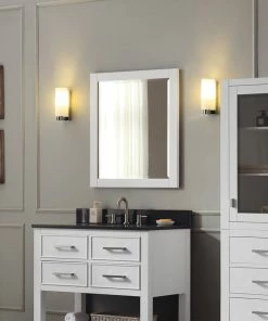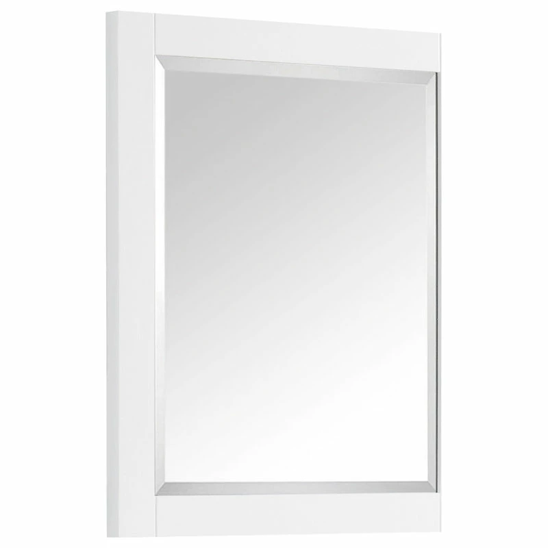 The Avanity 24 in. X 30 in. poplar wood framed mirror features a contemporary white finish and a simple clean design. It matches with several collections (Brooks, Modero) for a coordinated look and includes mounting hardware for easy installation. The mirror hangs horizontally and vertically.