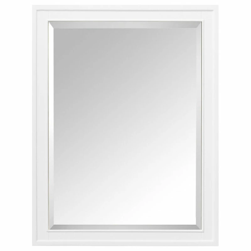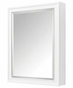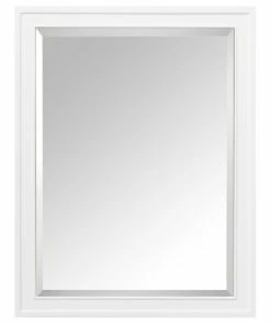 The Madison 24 in. X 5.1 in. x 32 in. Poplar framed mirror cabinet features a White finish with strong decorative lines. Three glass shelves are included for easy storage. It matches the Madison vanities for a coordinated look and includes mounting hardware that makes leveling easy.
