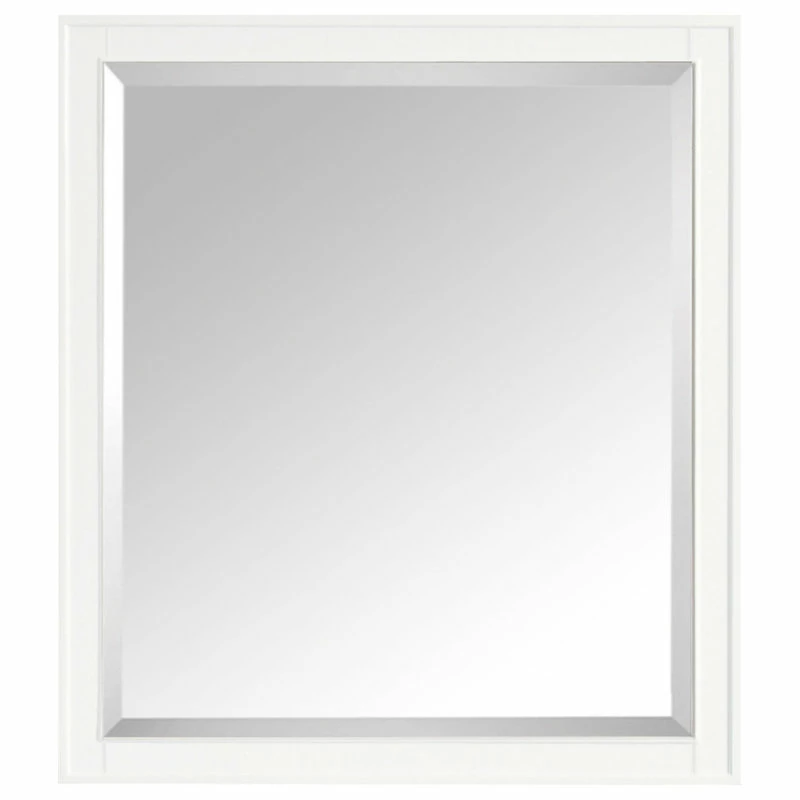 The Madison 36 in. X 32 in. Poplar wood framed mirror features a contemporary White finish and a simple clean design. It matches with the Madison collection for a coordinated look and includes mounting hardware for easy installation. The mirror hangs horizontally and vertically.