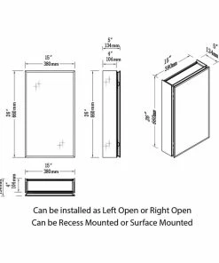 - Mirrors on both sides of the door, interior walls & both side panels, which makes it a bathroom cabinet with mirror on all sides.