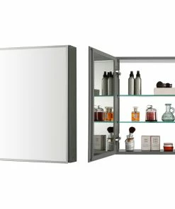 - Mirrors on both sides of the door, interior walls & both side panels, which makes it a bathroom cabinet with mirror on all sides.
