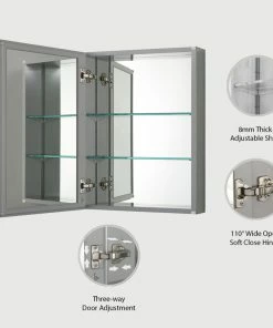 - High-end hardware brand DTC 110ยฐ wide-open soft closed hinges provide strong support for large medicine cabinet.