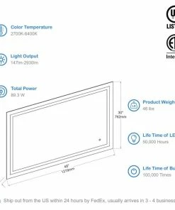 Be the first to review “Best Sale ๐ Blossom Kitchen & Bath Supply Fogless, Color Temperature Adjustable LED Mirror, 48″x30″ ๐งจ” Cancel reply