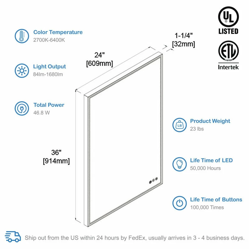 - Smart memory function remembers your favorite setting, no need to adjust every time you turn on the mirror.