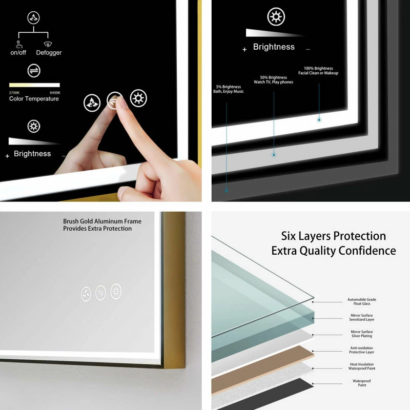- MATTE BLACK or BRUSH GOLD frames not only provides extra protection also elegant design to this smart mirror.