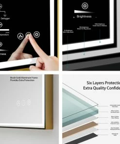 - MATTE BLACK or BRUSH GOLD frames not only provides extra protection also elegant design to this smart mirror.