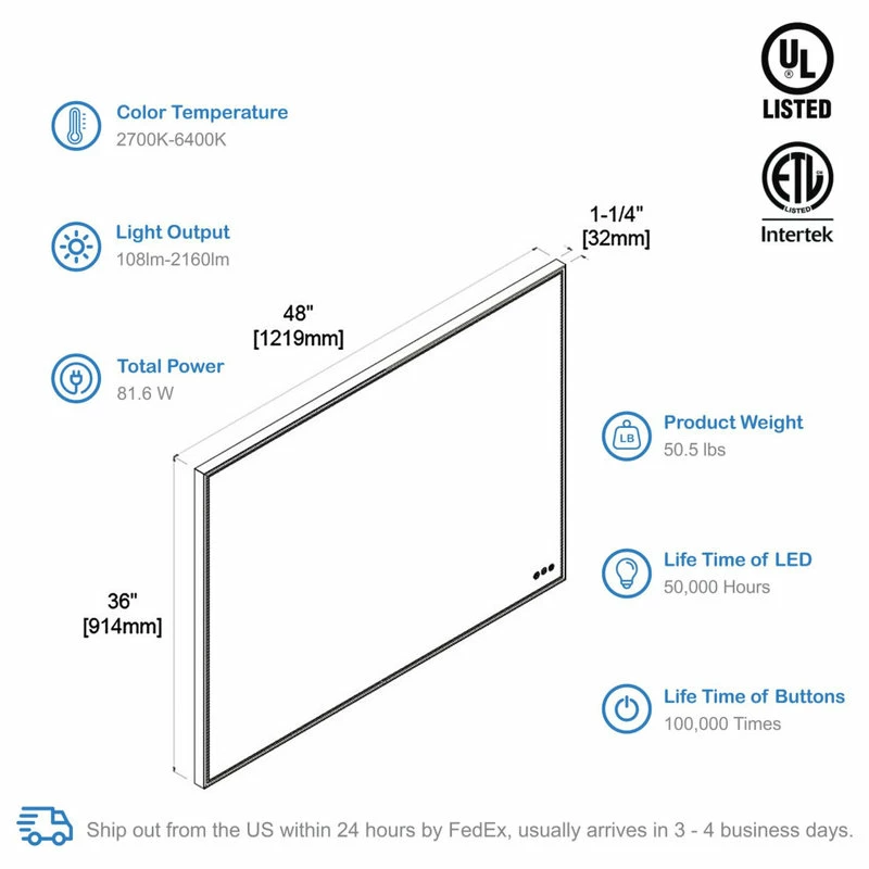 - Smart memory function remembers your favorite setting, no need to adjust every time you turn on the mirror.