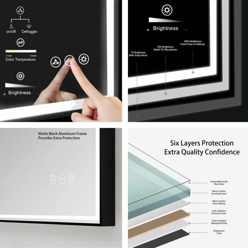 - MATTE BLACK or BRUSH GOLD frames not only provides extra protection also elegant design to this smart mirror.