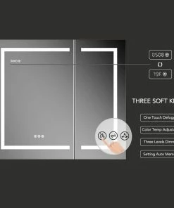 - THREE SOFT TOUCH SWITCH makes this ETL Certified LED Medicine Cabinet simple and easy to turn ON/OFF, adjust brightness and change color temperature.