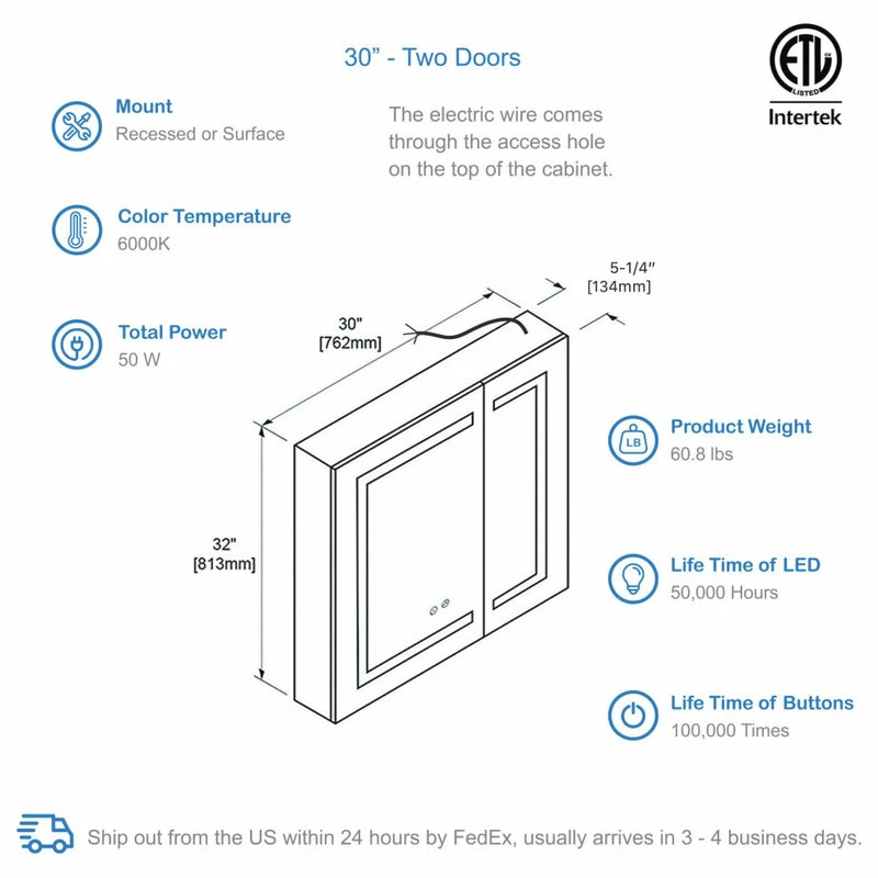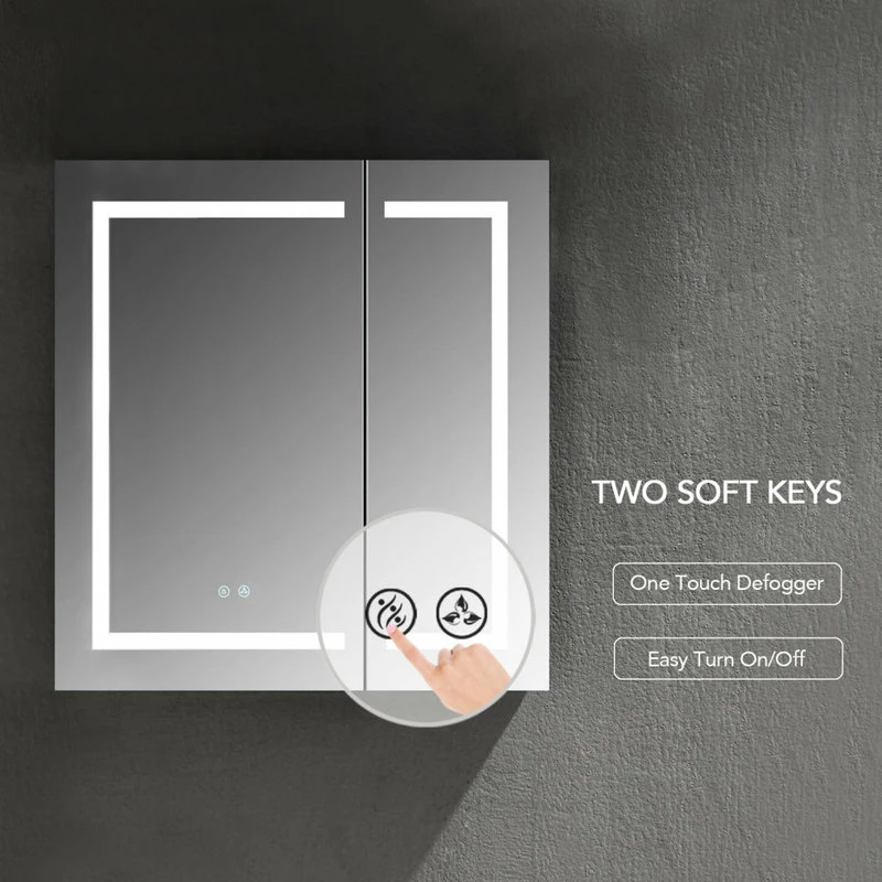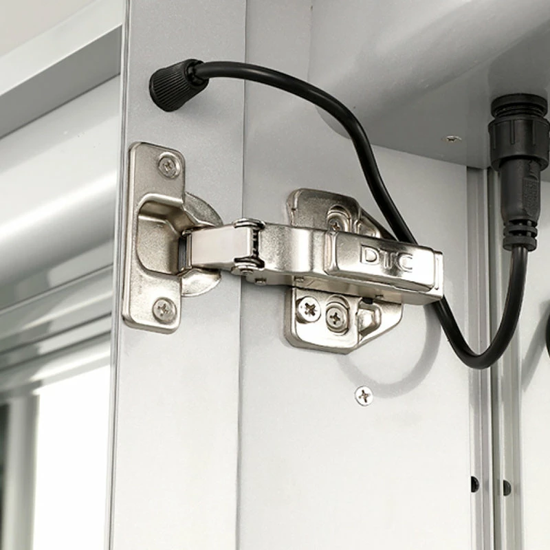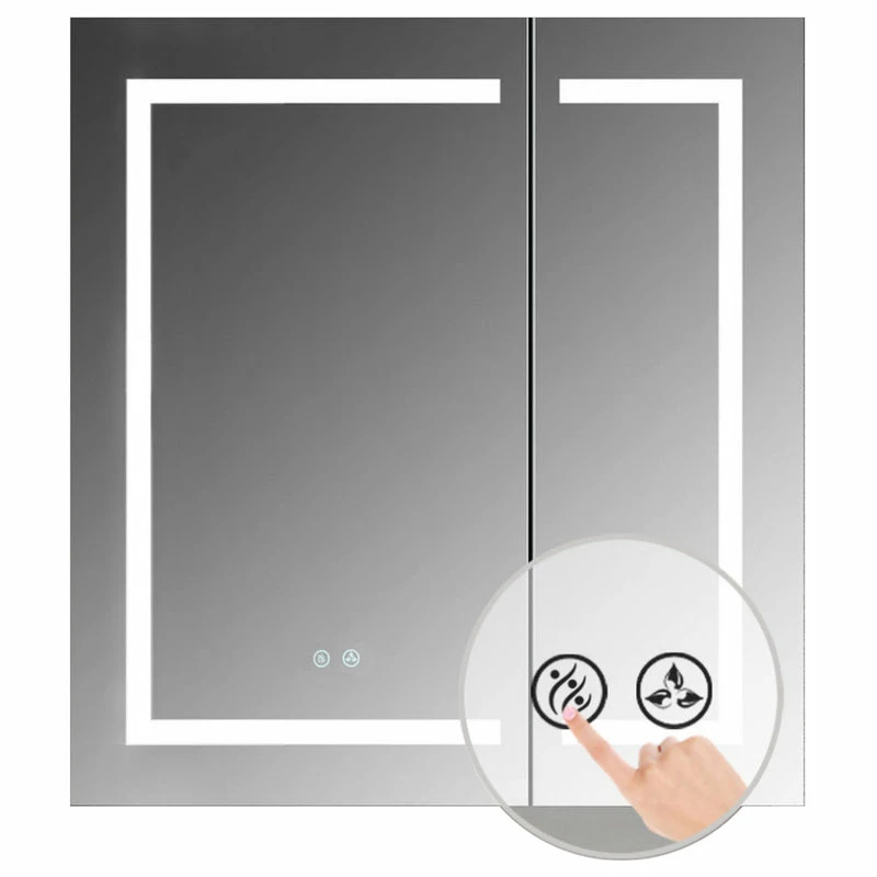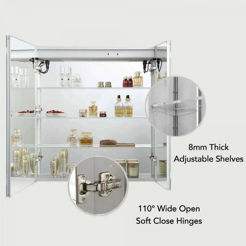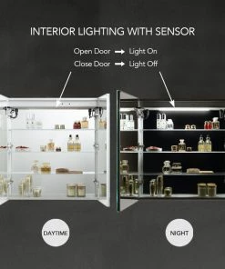 - Inside LED Light with door switch sensor. Mirrors on both sides of the door.