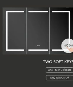 - TWO SOFT TOUCH SWITCH makes this ETL Certified LED Medicine Cabinet simple and easy to turn ON/OFF and adjust defogger.