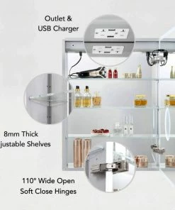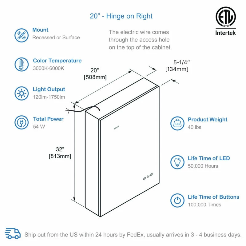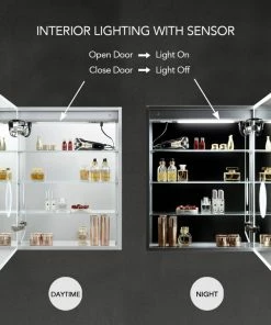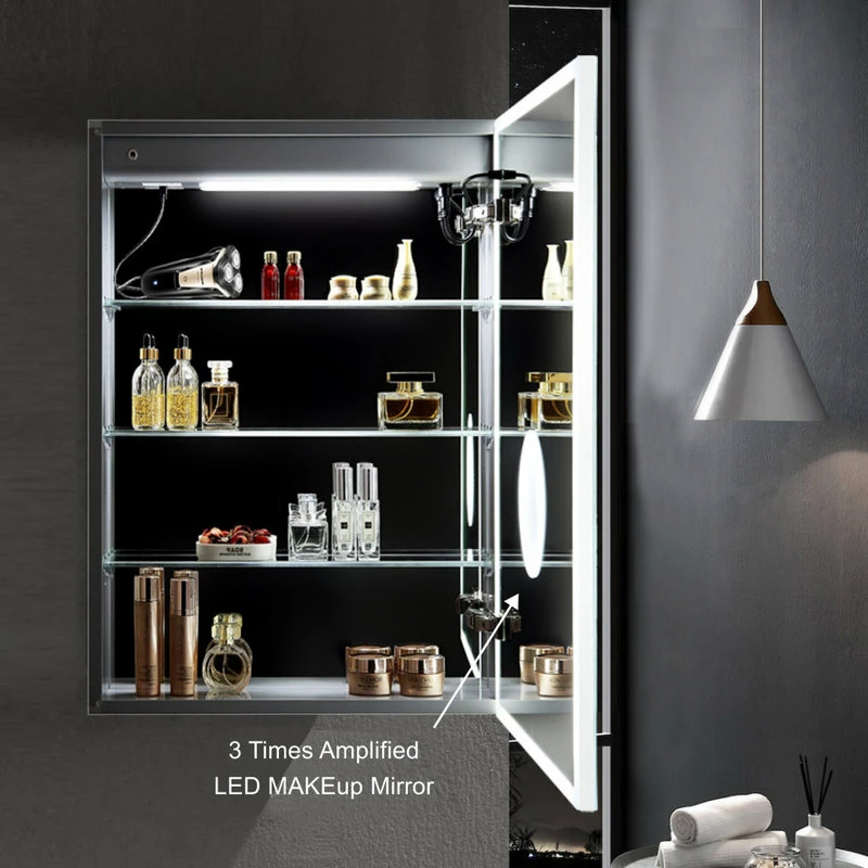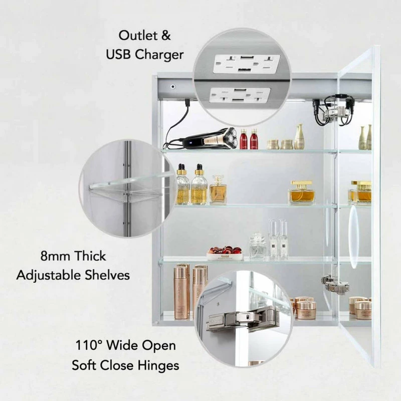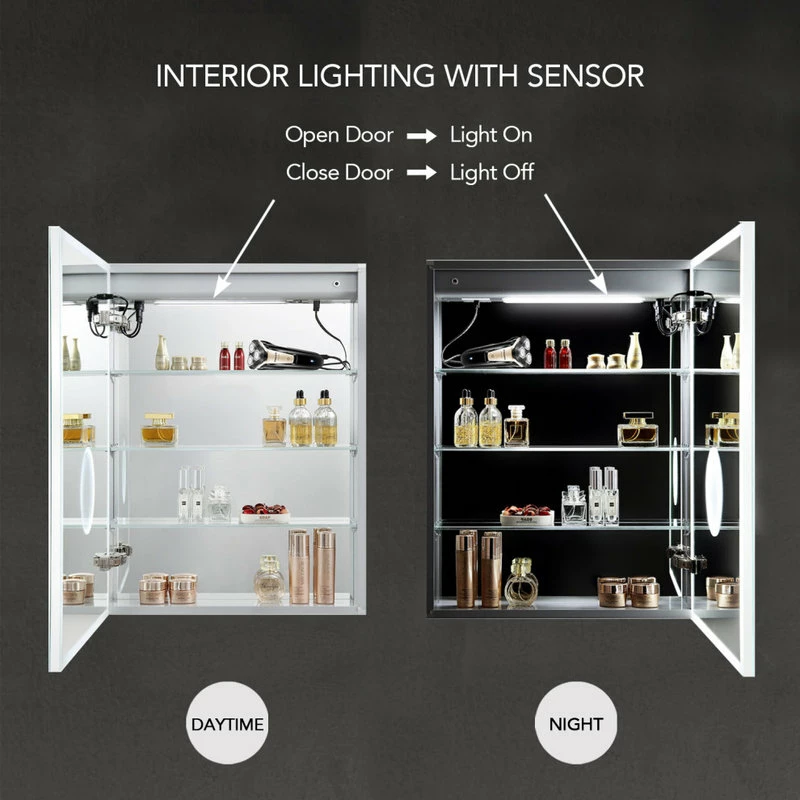 - Inside LED Light with door switch sensor. Mirrors on both sides of the door.