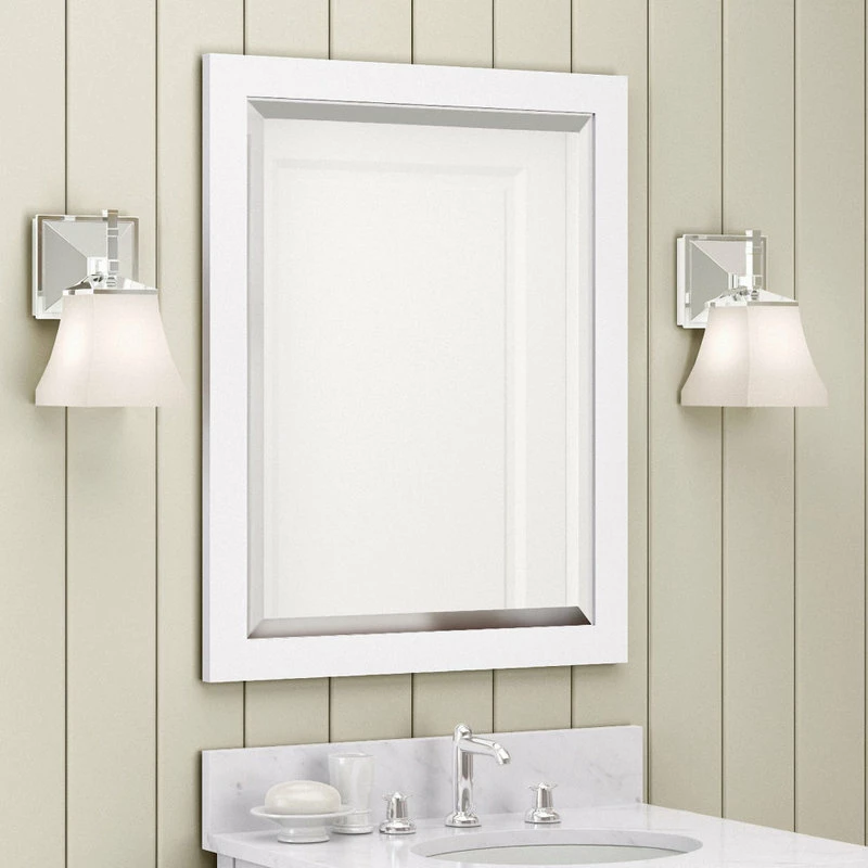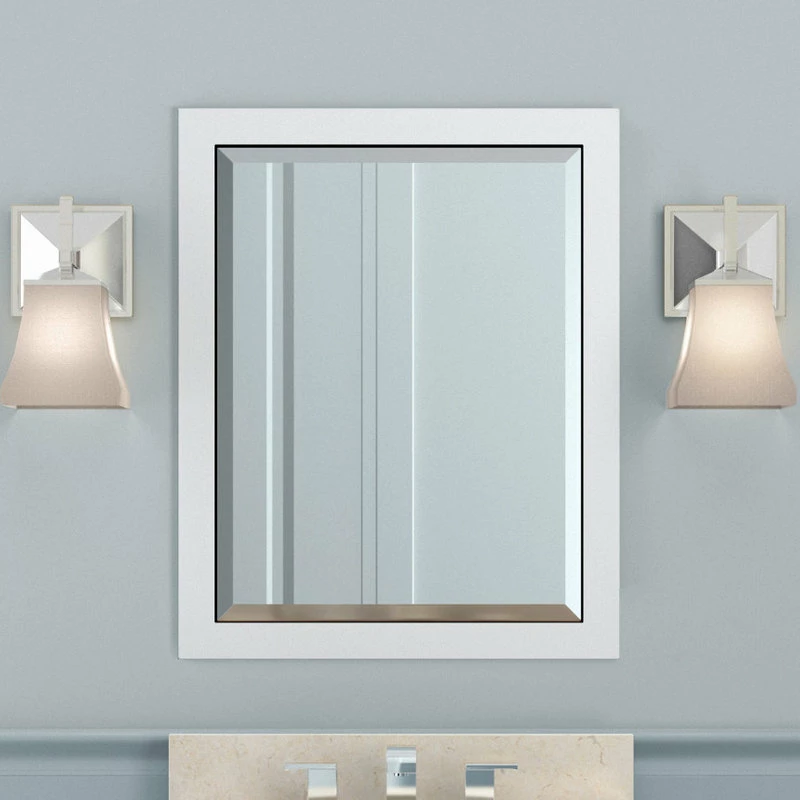 This is the perfect mirror for any bathroom space. The mirror features beveled glass in a low profile, wooden frame. It is available in multiple finish options. Each mirror can be hung either vertically or horizontally. At 24″ wide x 30″ high, this mirror is the perfect size for your bathroom or vanity. Less than an inch deep it will lay close to the wall for a clean look. These features combine to allow versatility in any bathroom or vanity space.