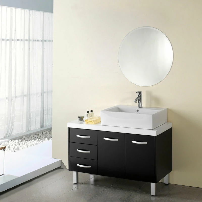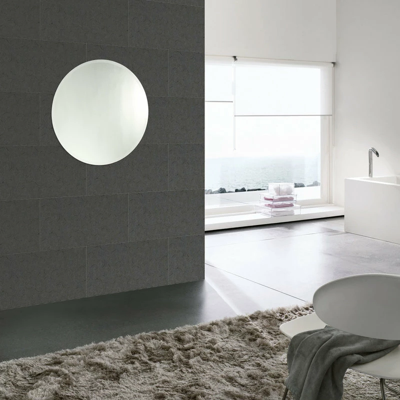 This round shaped frameless mirror has a lovely beveled edge that will complement many decors throughout your home. This piece can be used on a wall or as part of a table centerpiece, creating a stylish atmosphere wherever it is on display.