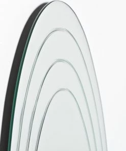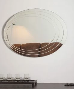 Renew and revitalize your bathroom with this large oval Hanna frameless bathroom mirror. This large mirror will brighten up your bathroom, entryway or living room exuding feng shui in your home. Great large round wall mirror. The invisible mounting hardware is designed to keep the top and bottom of the mirror flush against the wall.