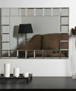 The Montreal modern wall mirror was inspired by European contemporary design. This bold and beautiful mirror is a center piece that commands attention in any room, living room, main entrance or bathroom. The Montral wall mirror is hand crafted from 24 beveled mirrors, with each square featuring beveled border, truly one of a kind, hand made, in the world of home accessories and design.