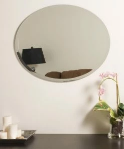 Renew and revitalize your bathroom with this oval frameless bathroom mirror featuring a 1″ bevel. Add a touch of modern style to your wall with the Odelia oval beveled frameless bathroom mirror measuring 28 x 22 suit to fit small to medium sized spaces.