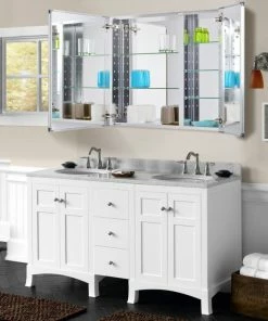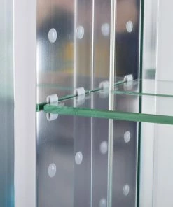 This aluminum medicine cabinet is rustproof, sturdy, and lighter than steel, making installation easier! It is made with tempered glass shelves that provide great organization of your bath needs. This is a great piece for your bathroom or your vanity to add style and functionality!