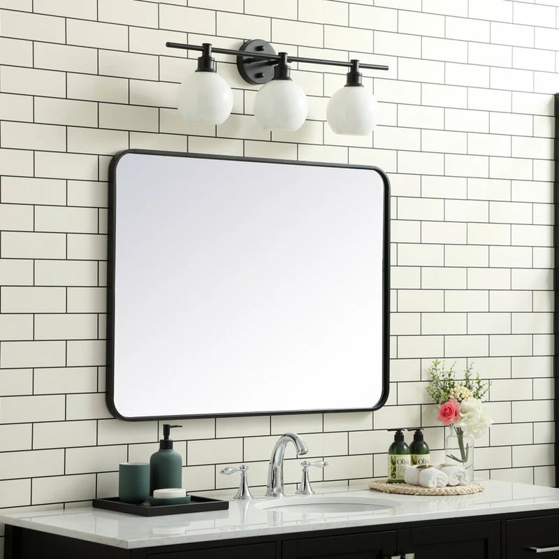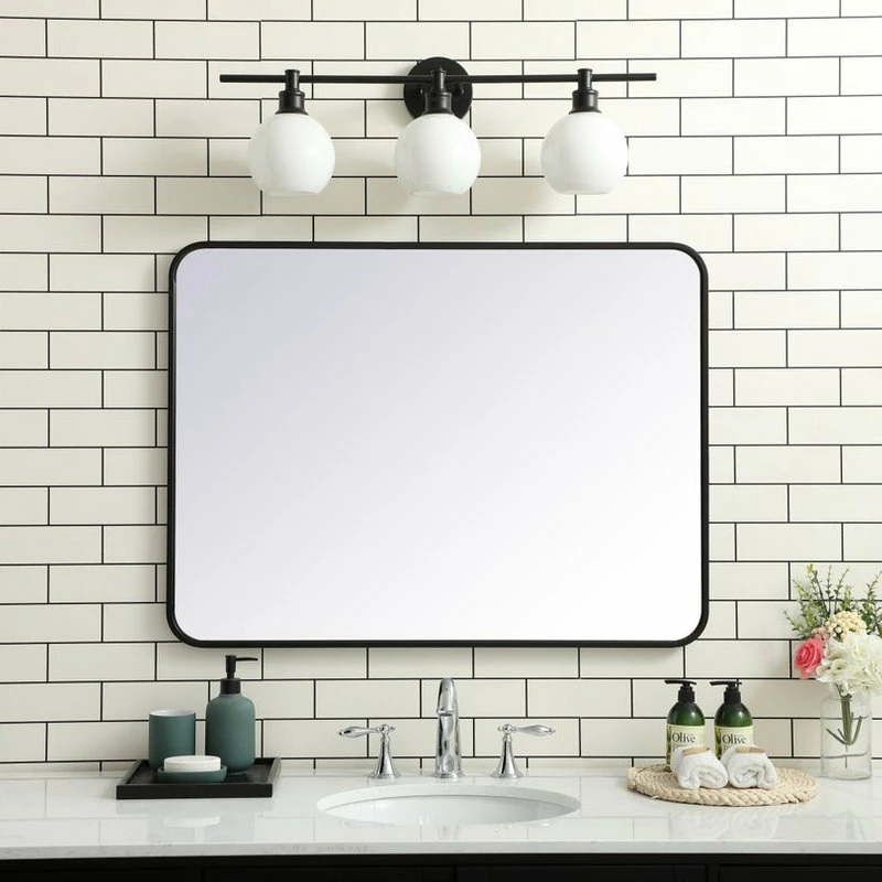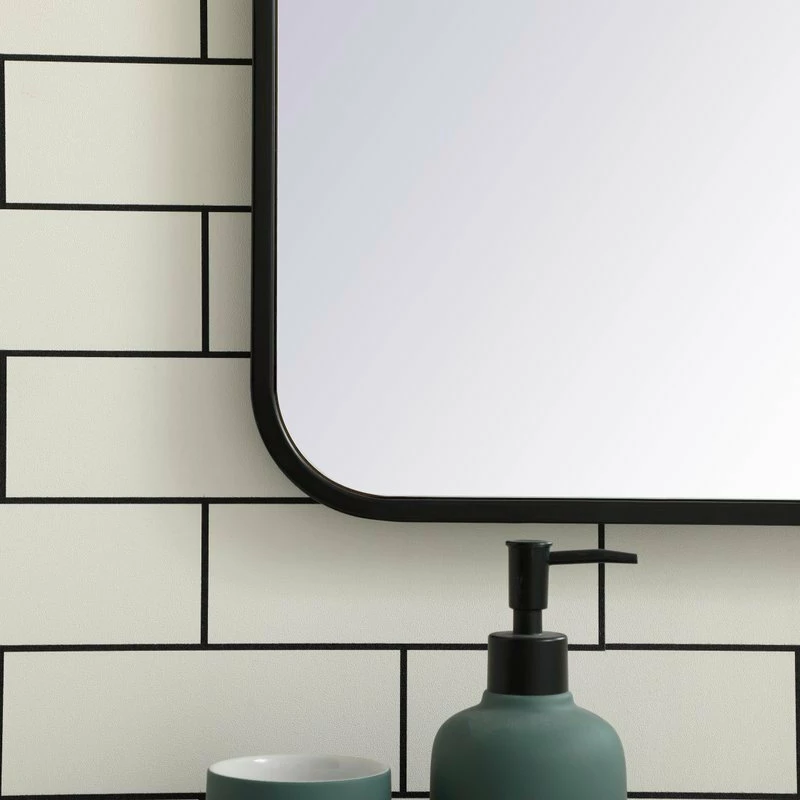 Buy 👏 Elegant Furniture & Lighting Ellis Soft Corner Metal Rectangular Mirror, 20″x30″, Black 💯