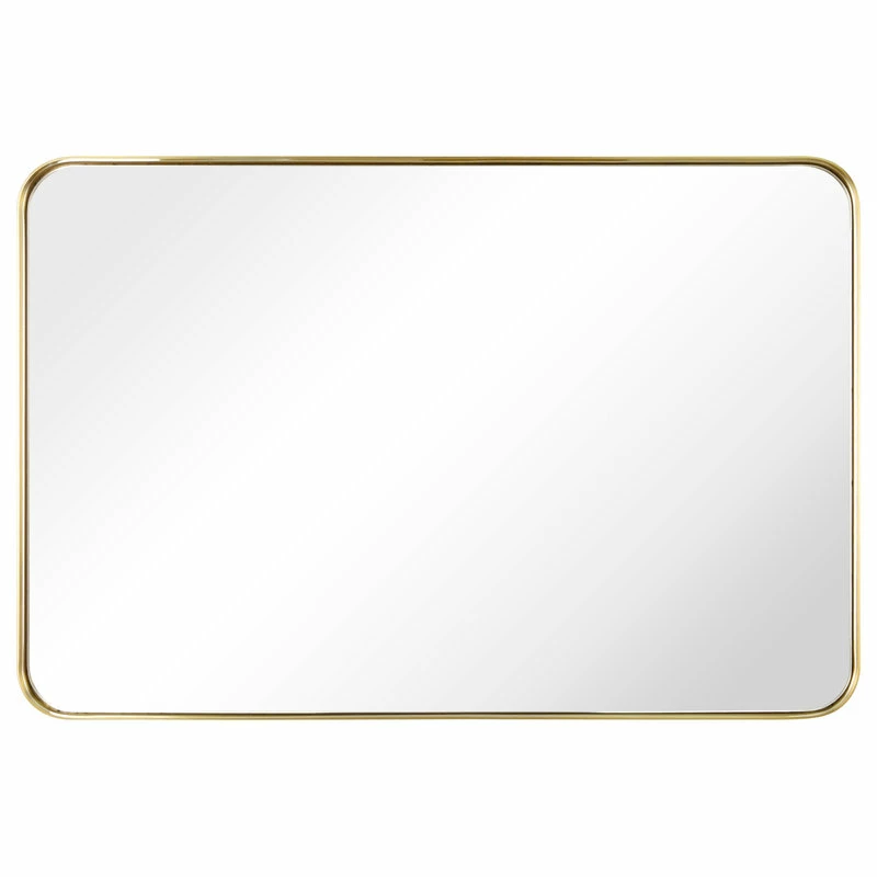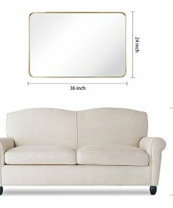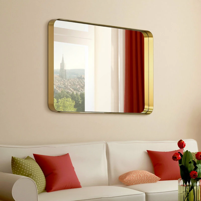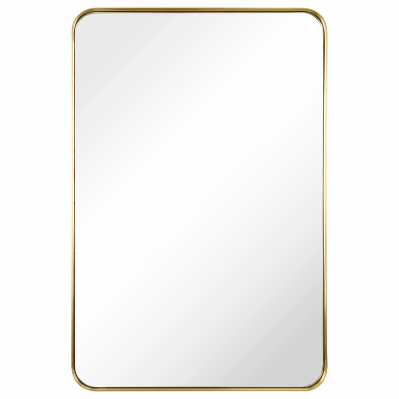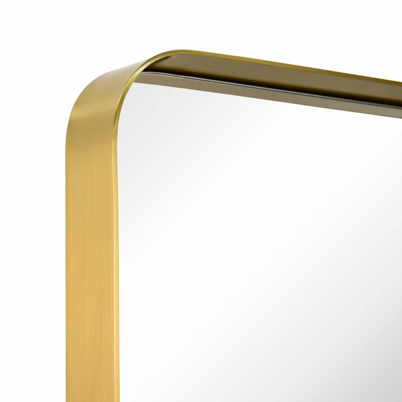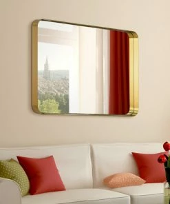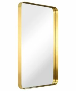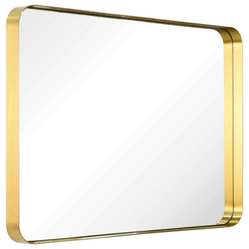This inspiring 24″ x 36″ rectangular wall mirror is incredible for adding utility and function to wall space without compromising on minimalistic beauty. With a brushed gold stainless-steel frame, this piece embodies the ultimate in quality and modern presentation. This mirror uses silver glass, making sure NO distortion or wrapping. All that is needed to hang this mirror are EZ anchors that can be purchased at your Lowes or Home Depot. 4 strong pre-installed D-Rings are attached to the back of the product for quick and easy installation either vertically or horizontally.
