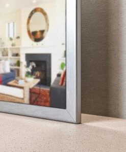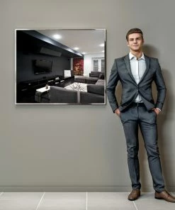 Measuring 35 by 30 inches, the Eviva Sax Framed Bathroom Wall Mirror features a simple chrome frame. This versatile piece is designed to match many bathroom styles. Place this mirror over your vanity or on a side wall. This mirror will add an enlarged sense of space and light to your bathroom.