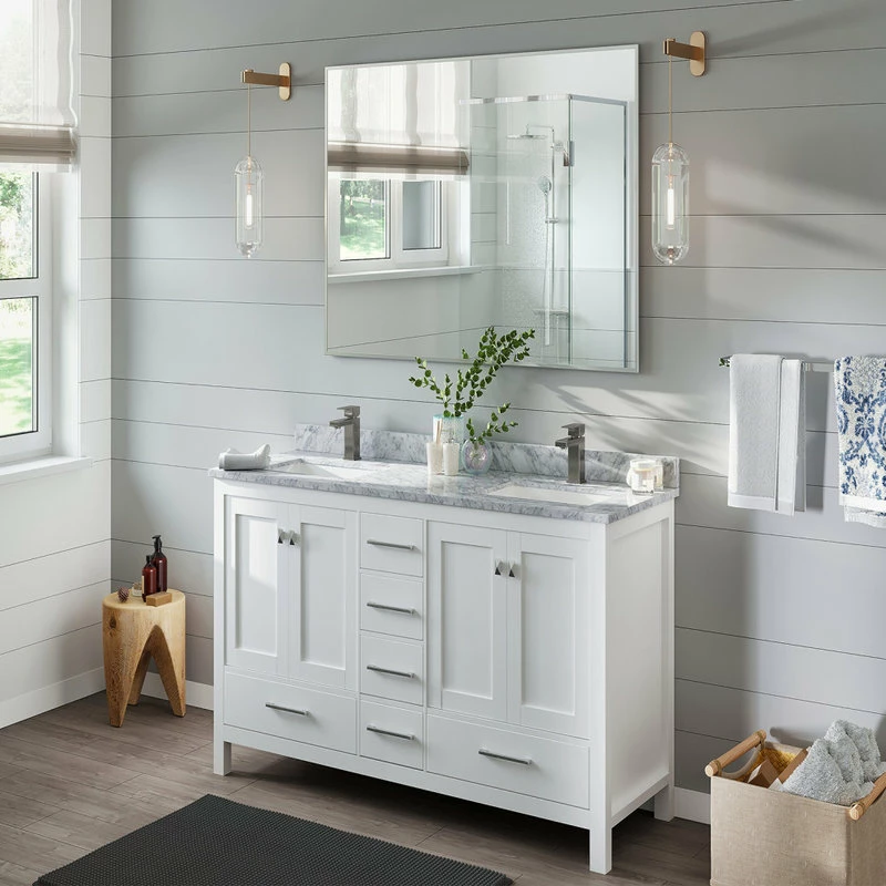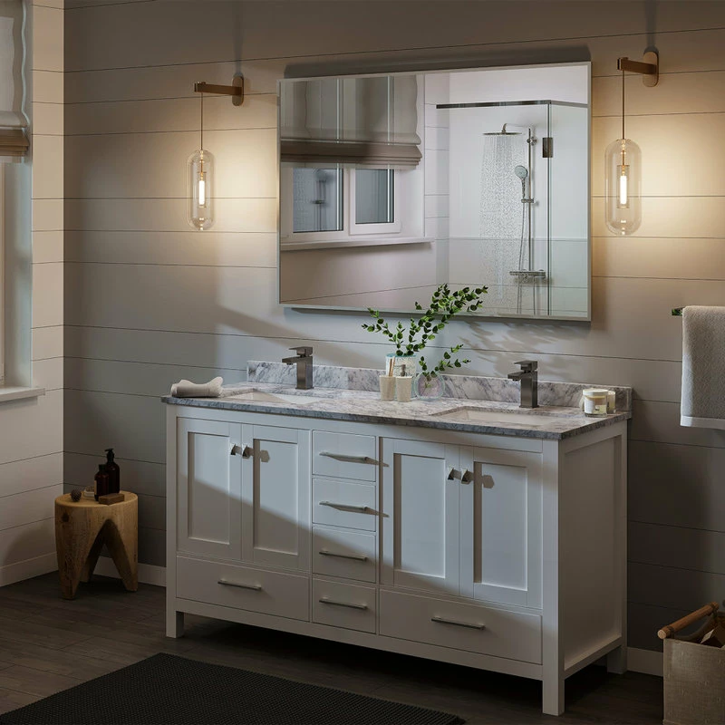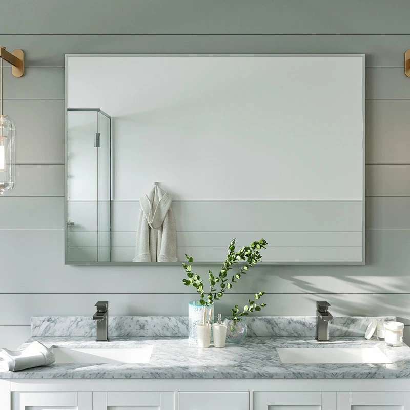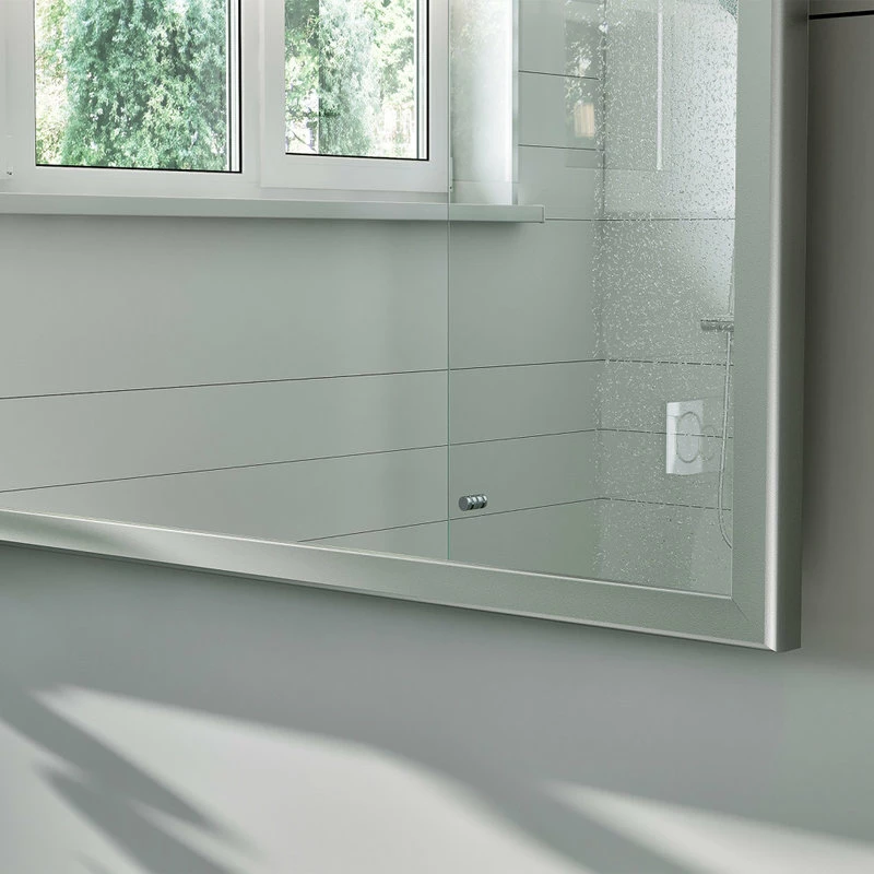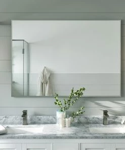 Measuring 60 by 30 inches, the Eviva Sax Framed Bathroom Wall Mirror features a simple chrome frame. This versatile piece is designed to match many bathroom styles. Place this mirror over your vanity or on a side wall. This mirror will add an enlarged sense of space and light to your bathroom.