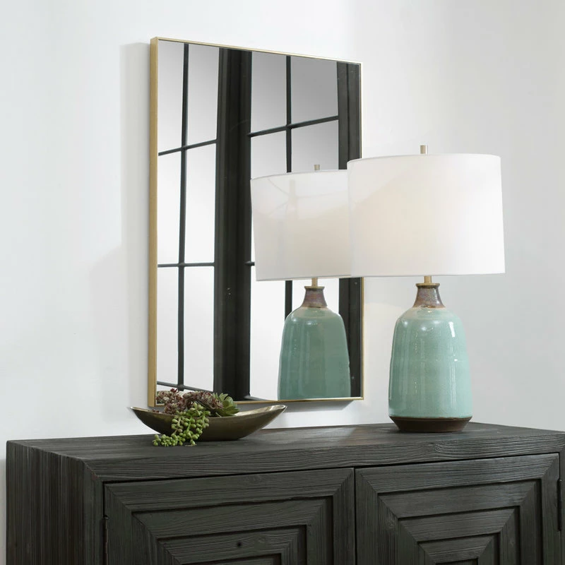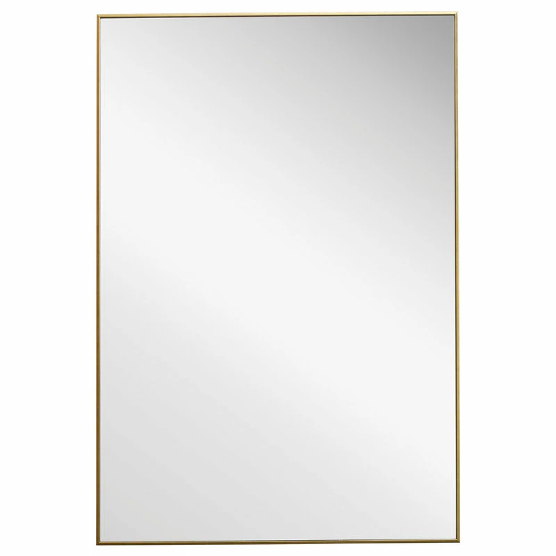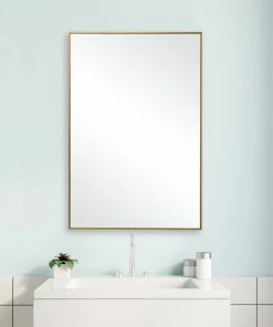 This thin frame with plain mirror and gold finish creates a simple, clean design that will complete any space. It is perfect over a bathroom vanity or wherever you want an updated, contemporary look. May be hung either vertically or horizontally. Also available in three additional finishes – black, gunmetal and silver.
