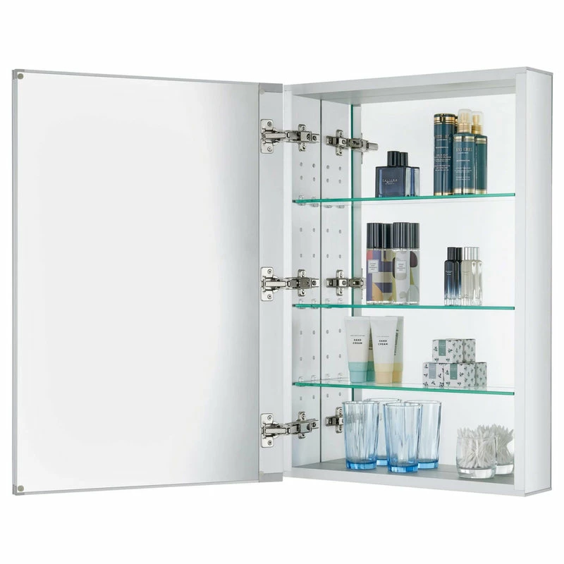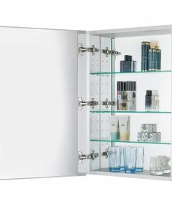 HEAVY DUTY CONSTRUCTION- Constructed from high quality anodized aluminum with a durable nonrusting and chip free finish. Adjustable 1/4 inch tempered glass shelves offer additional bathroom storage. They will easily accommodate your essential toiletries and bath items such as soaps, shampoos, toothpaste, in addition to your makeup.