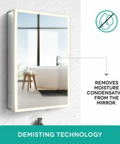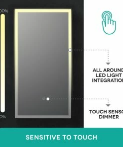 LED- LED task lighting integrated to the front as well as inside top of the cabinet. Brightens at 22 Lumens in Warm White color at 3500k (14.4W/M). Our brilliant lights have an estimated life expectancy of 36,000 hours. Features a blue lighted touch on/off button. Mirror must be hardwired, wiring comes out from the top right of cabinet. [Light is not strong enough to be the source of light for your vanity/washroom, additional lighting will be needed.]RECESSED OR WALL MOUNT INSTALLATION OPTION- No assembly required. All mounting hardware included. Easy installation, step by step easy to follow clear instruction guide included.