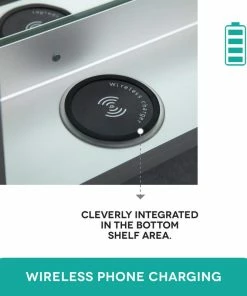 - Exclusive feature – Wireless cell phone charger on bottom shelf – Works for ‘Apple’ or ‘Android’